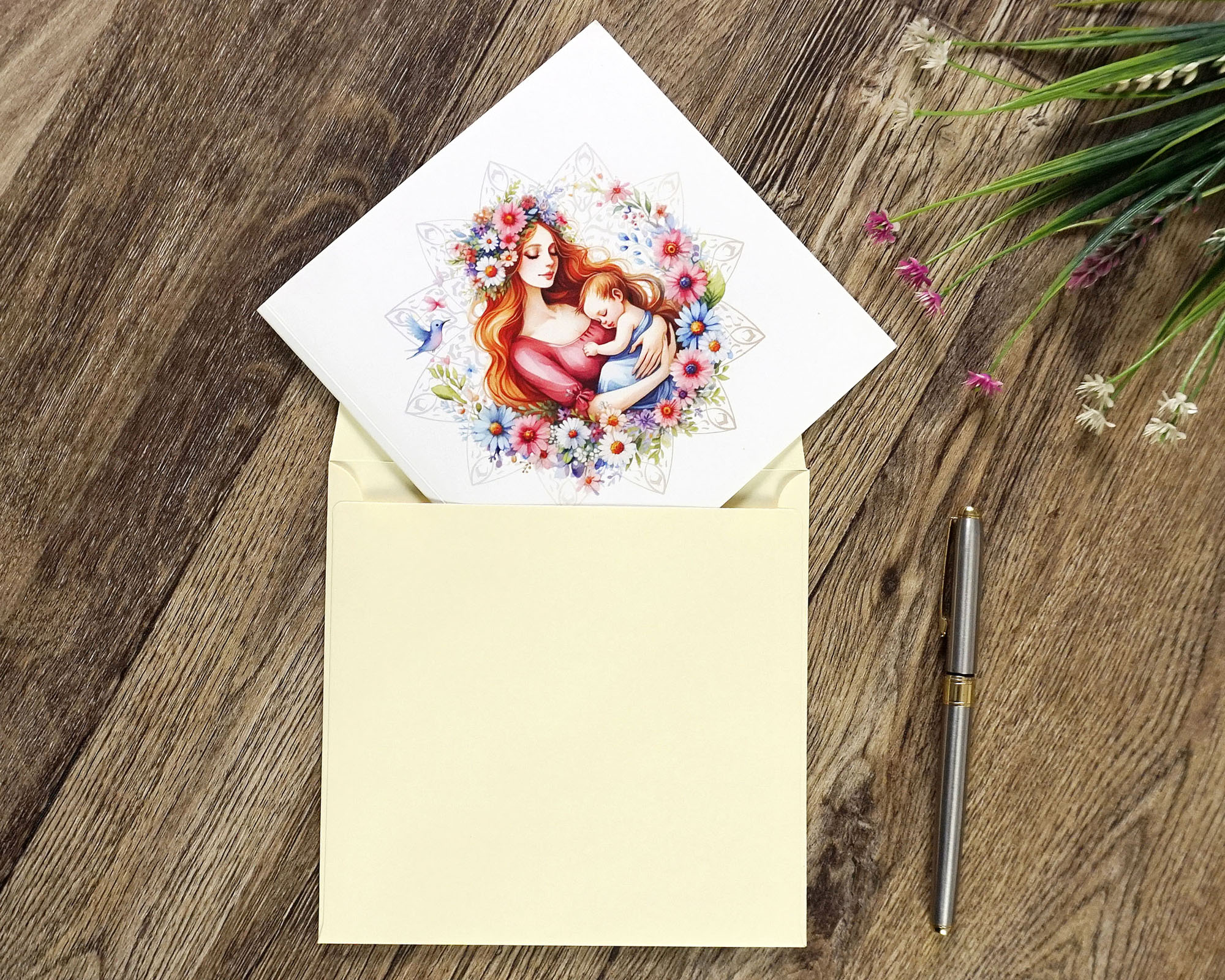 Thiệp 3D dành cho mẹ: Thiệp 3D đầy tinh tế, khắc họa một khoảnh khắc thiêng liêng và ấm áp với hình ảnh người mẹ ôm ấp đứa con nhỏ trong vòng tay, giữa một vườn hoa rực rỡ. Tấm thiệp không chỉ là một phương tiện truyền tải thông điệp, mà còn là một biểu tượng sống động của tình mẫu tử, của sự dịu dàng và tình yêu thương vô bờ bến.